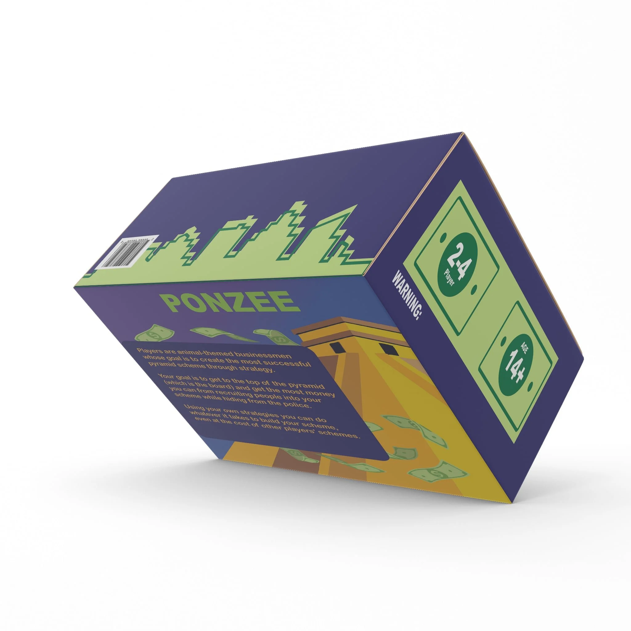 Ponzee is a social deduction survival board game where players take on the roles of animal-themed businessmen, each striving to build the most successful pyramid scheme through strategy and cunning. The goal is to climb to the top of the pyramid-shaped board and amass as much wealth as possible by recruiting others into your scheme — all while avoiding the watchful eyes of the police. By using clever and unique strategies, players can do whatever it takes to grow their empire, even if it means sabotaging their rivals’ schemes.